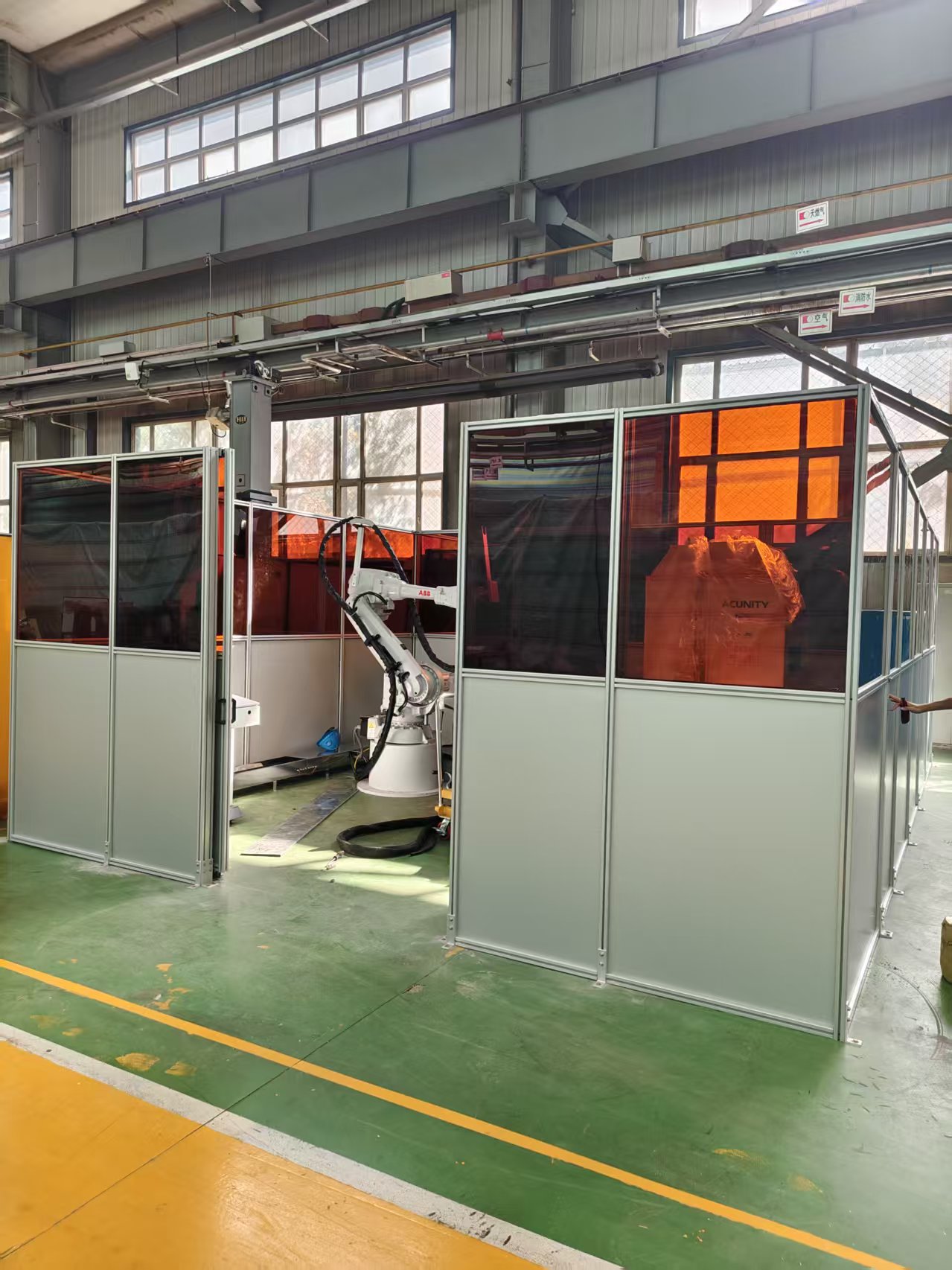 阻擋危險物飛出:機器人操作(如搬運、打磨、焊接)可能發(fā)生零件、工具或碎屑意外飛出,圍欄能有效阻擋這些飛行物。