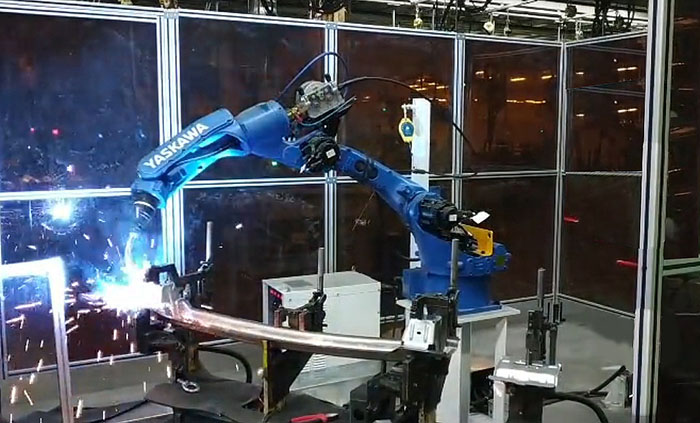 現(xiàn)代工業(yè)加工,多半采用機(jī)器人操作,一是技術(shù)需要,也替換了有些對人體會造成危害的加工流程。