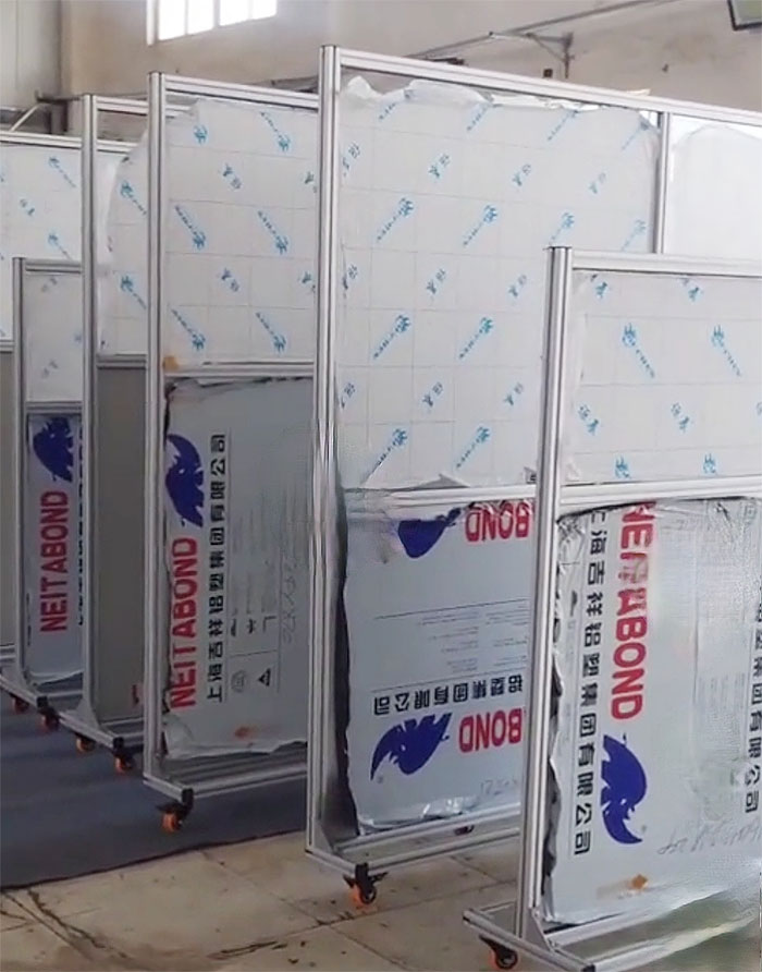 防護(hù)屏推拉式:屏風(fēng)三面折邊打孔,*** 上面每40CM打一個(gè)金屬吊環(huán)孔,免費(fèi)提供尼龍?jiān)鷰?。將打眼方與橫梁用扎帶或鋼絲繩連接或穿起來(lái),使防護(hù)屏推拉方可佳。